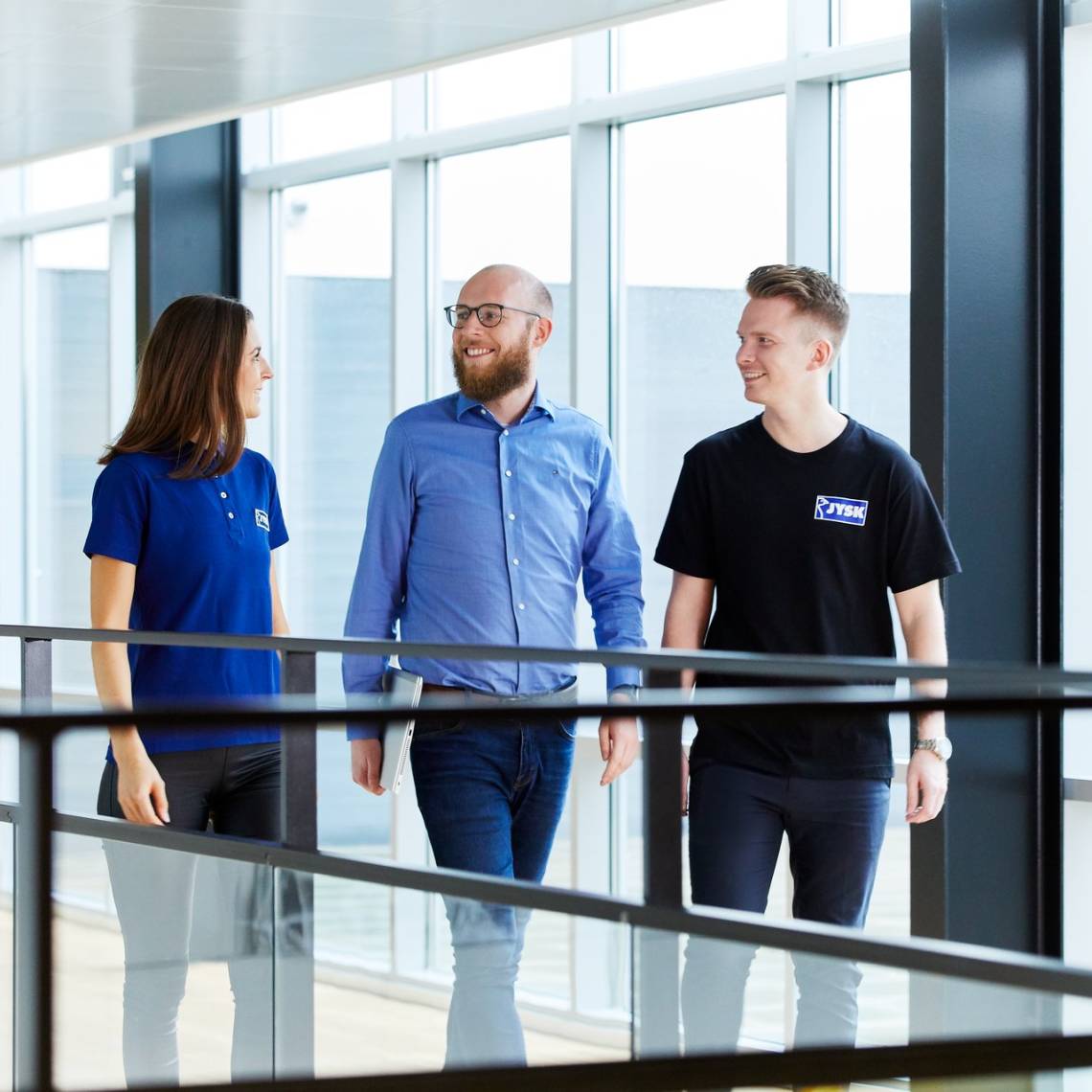 Tu es en visite dans l'un de nos magasins ou tu es invité à un événement officiel ? Alors n'hésite pas à porter une chemise ou un polo JYSK, car nous sommes fiers de représenter JYSK à l'extérieur aussi. Tu recevras les vêtements "bleus" de ton responsable.